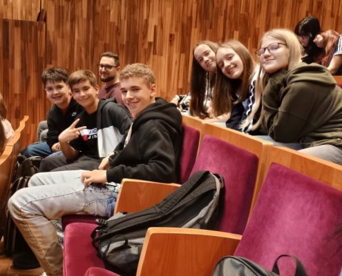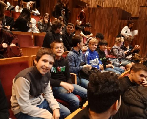 Osztályunk minden tanévben ellátogat a MÜPA-ba, ahol már sok érdekes előadáson és rendhagyó ének órán vettünk részt. Idén 11.11-én az OrgonaExpedició elnevezésű programra érkeztünk. Közelről megtekintettük a Bartók Béla Nemzeti Hangversenyterem nevezetességét az orgonát. Gyönyörködhettünk impozáns felépítésében és gazdag hangzásában. Fassang László orgonaművész avatott szakemberként bevezetett minket a működésének titkaiba. Vetítéssel kísért, sok érdekességgel tarkított előadásán megismerkedtünk a 6804 sípból álló hangszerrel. Emellett rövid virtuóz hangszerbemutató játékát is élvezhettük.