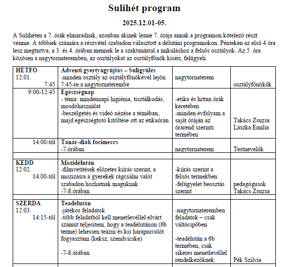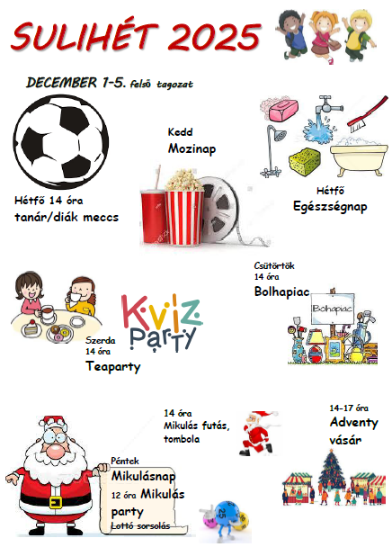 December 1-én, a suli napok keretében, az alsós osztályok szebbnél szebb, jobbnál jobb alkotásokat készítettek zöldségekből és gyümölcsökből.