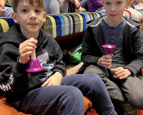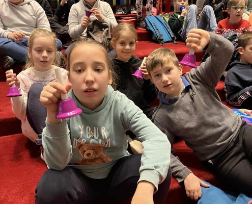 A 3.a és a 3.b osztály ismét a Müpa-ban járt. A Csengő-bongó csengettyűk interaktív előadáson vettünk részt.