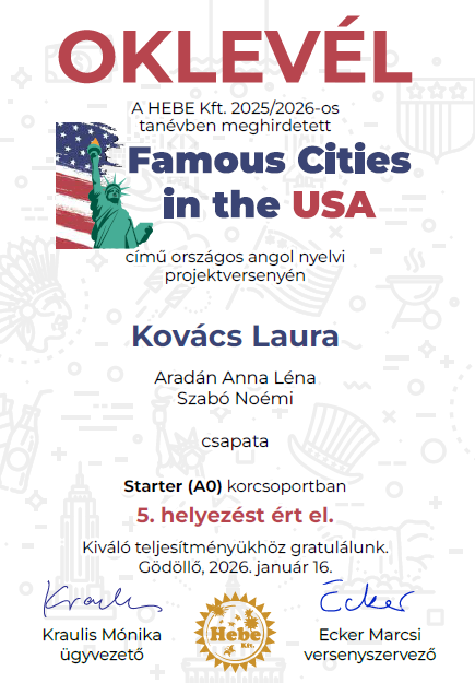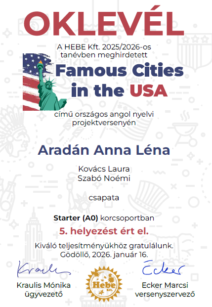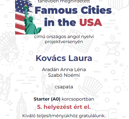 Kiss Eszter Zsófia 7.b osztályos tanuló az Országos Szabadstílusú Rúd-és Légtorna Bajnokságon Discovery Hammock Junior kategóriában II.helyezést ért el.