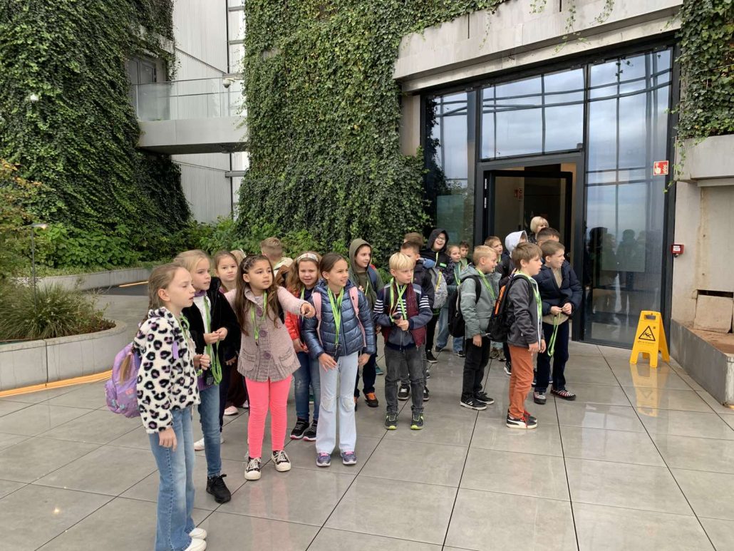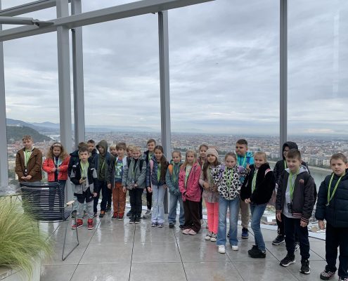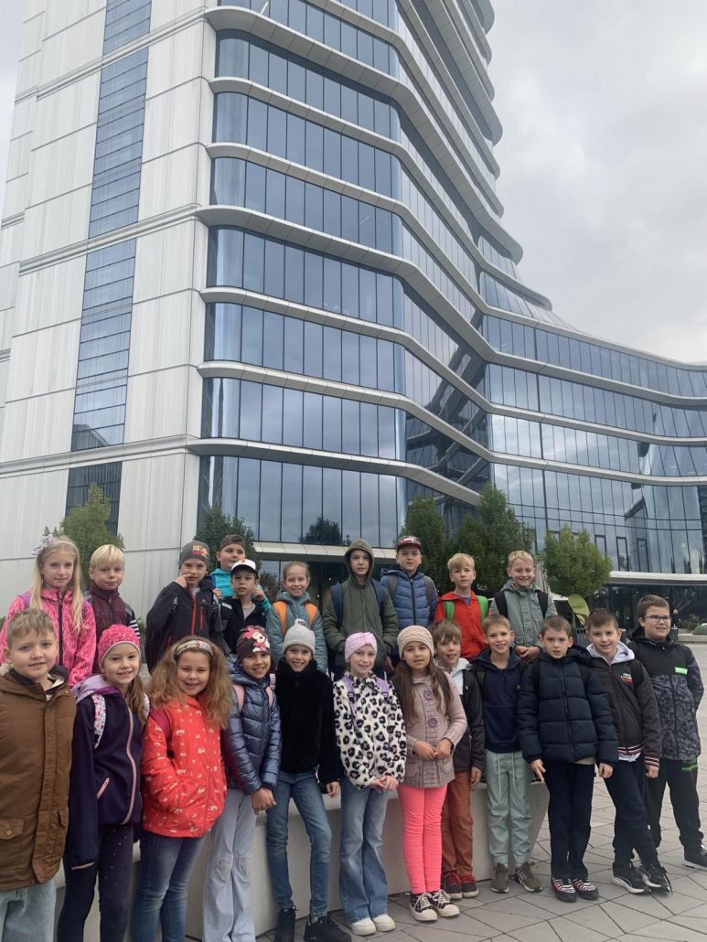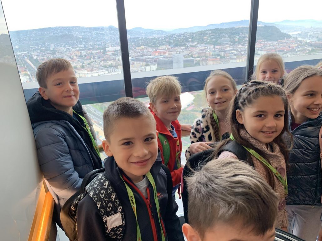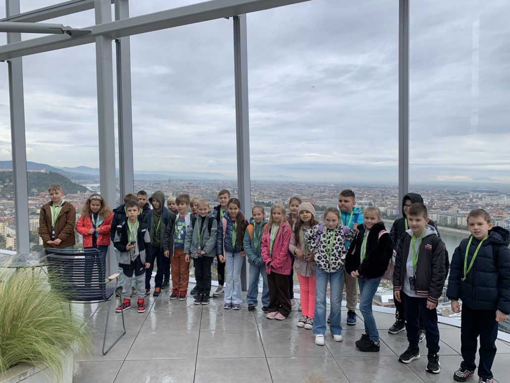 Egy kedves szülő segítségével szervezhettük meg ezt a különleges kirándulásunkat a Kopaszi- gáthoz, a Mol Campusba. Már az épület mérete is lenyűgöző: Magyarország legmagasabb irodaháza, 143 méter magas, és több mint 28 emeletből áll. 23 lift üzemel az épületben, melyek közül néhány rendkívül gyorsan, másodpercenként akár 5 métert is képes megtenni, így Magyarország leggyorsabb liftjeinek számítanak. Megtudtuk, hogy az épületet úgy tervezték, hogy környezetbarát és energiatakarékos legyen – például esővizet is hasznosítanak benne, és rengeteg zöld növény díszíti belülről.