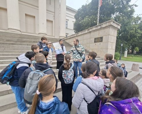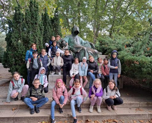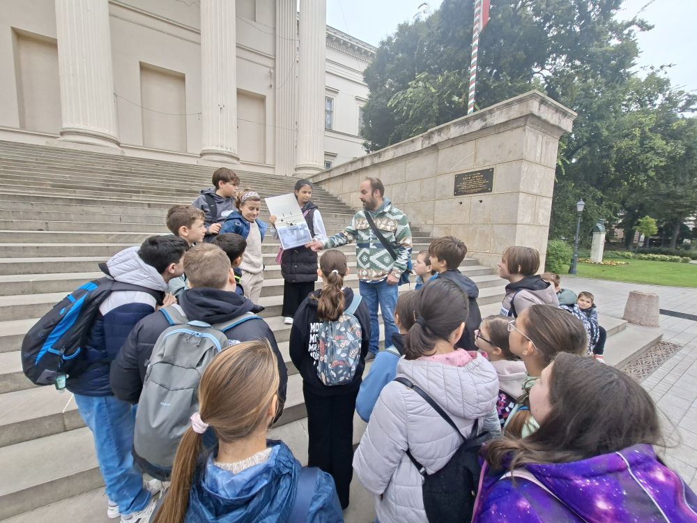 A 4. a osztállyal a Mezőgazdasági Múzeumban jártunk. Érkezésünkkor a Városligetben sétáltunk, megnéztük a Hősök terén látható szobrokat, és a Vajdahunyadvár különleges épületeit.