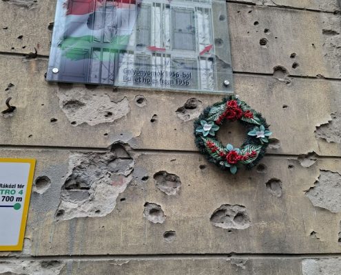 Nem csak végig jártuk az 56-os események emblematikus helyszíneit, de korabeli hanganyagokkal, zenékkel, érdekességekkel keltette életre a korszak hangulatát.