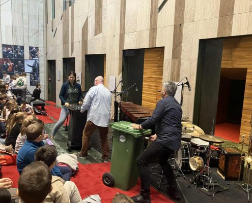 A műsor folyamán az Ismerős ritmushangszerek mellett igazi ritkaságok is előkerültek, de szinte minden ütőhangszerré vált a három előadó kezében. Nagy meglepetésünkre ütőhangszerré változott az írógép, a mángorló és még a szemeteskuka is.