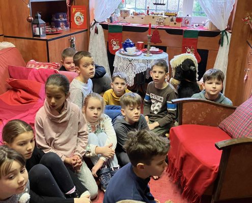 Hallottuk, hogy a Matrica Múzeumban egy szobát rendeztek be a Mikulásnak. Nagy kíváncsisággal látogattunk el a múzeumba, hogy megnézzük milyen is egy Mikulás szobája.