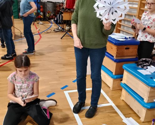 A felső tagozatosok különböző állomásokon próbálhatták ki ügyességüket és tudásukat, beleértve a vidám karácsonyi karaoke-t is, majd egy finom teázás-sütizés következett.