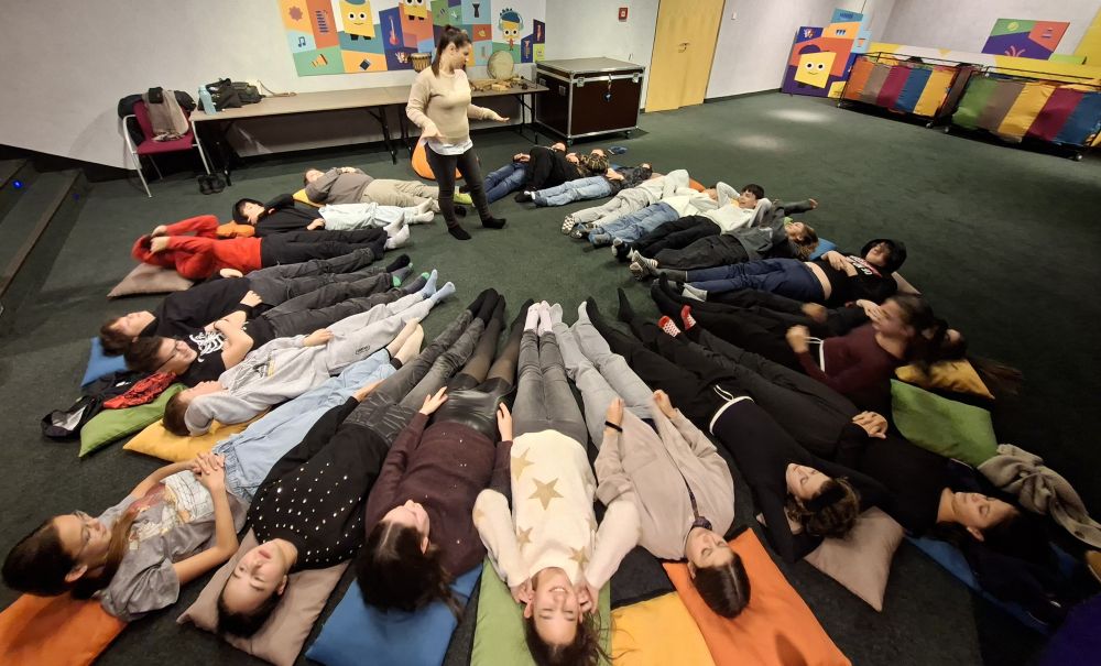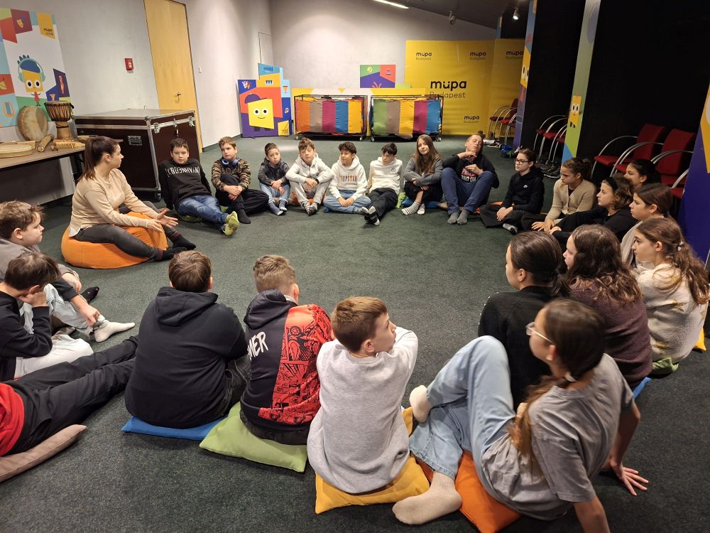 Osztályunk január 13-án ismét a MÜPA-ba látogatott a Zenebona – Ne csak hallgasd! elnevezésű foglalkozásra. Mindenkinek nagyon tetszett a Lépcsőteremben tartott különleges ének óra, melynek során a kreativitásunkra épülő tevékenységek közben élvezhettük a “zenecsinálás” örömét. Ritmus- és dallam- improvizációra épülő koncentrációt, memóriát is fejlesztő játékokat játszottunk. Érdekes, számunkra új hangszerekkel – okarina, konga – ismerkedtünk meg. Természetesen ki is próbálhattuk őket.