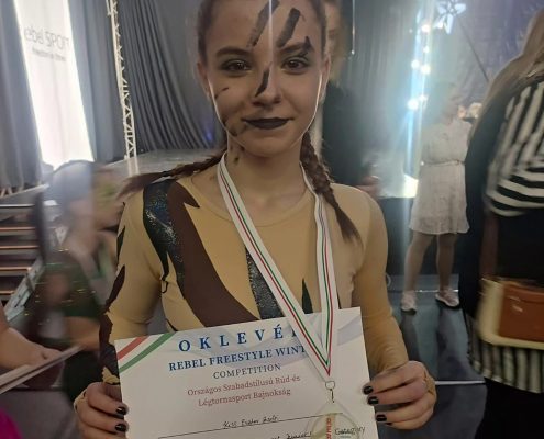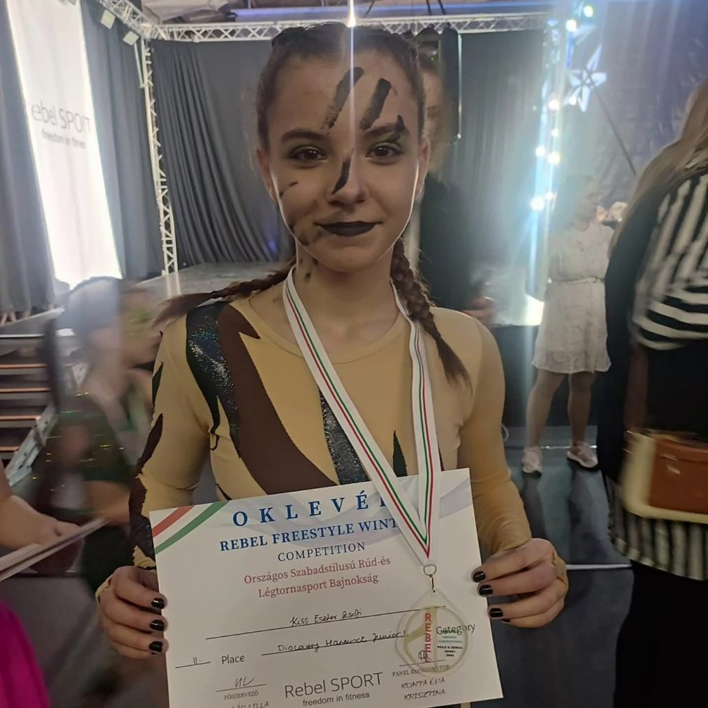Egy héttel ezelőtt, a Rebel Sport Competition szervezésében megrendezésre került Szigetszentmiklóson az Országos Szabadstílusú Rúd- és Légtorna Bajnokság, ahol különböző korcsoportokban mutathattak be a számokat a versenyzők: légtornán belül karikán, hammockon és silken. Iskolánk tanulója: Kiss Eszter Zsófia7.b osztályos tanuló Discovery Hammock Junior kategóriában II. helyezést ért el . Ezúton is gratulálunk neki, s bátorítunk másokat is , hogy próbálják ki magukat e sportágban, mely Battán elérhető.
