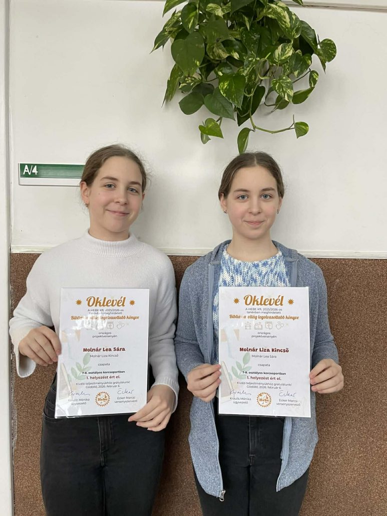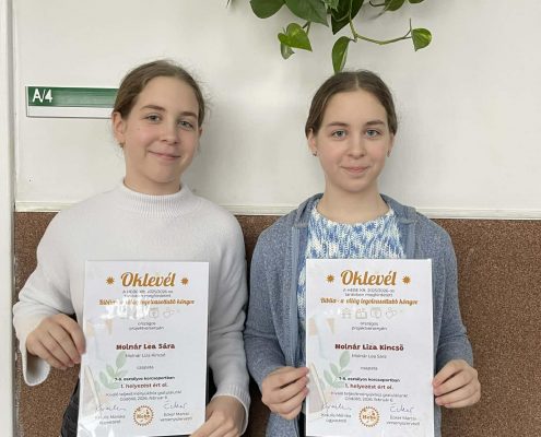 A 7-8. évfolyamosok között 1. helyezett lett Molnár Lea Sára és Molnár Liza Kincső 8.b