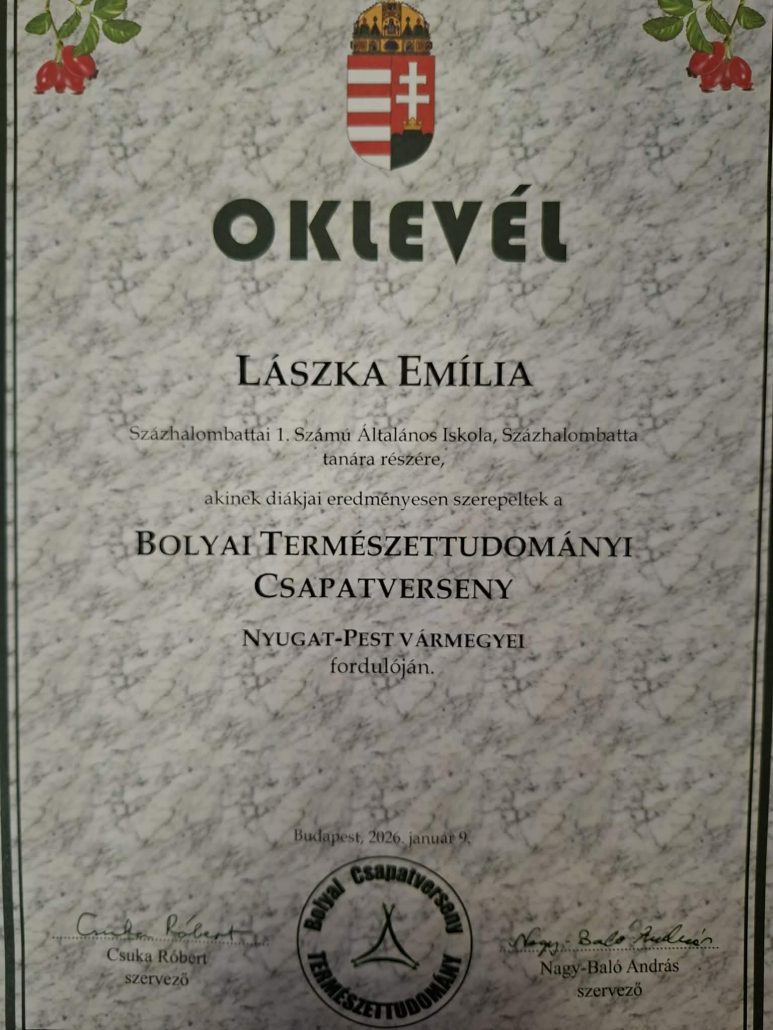 Az idén is eredményesen szerepelt iskolán két csapata a Bolyai Természettudományi Verseny Pest vármegye – nyugat körzeti fordulóján.